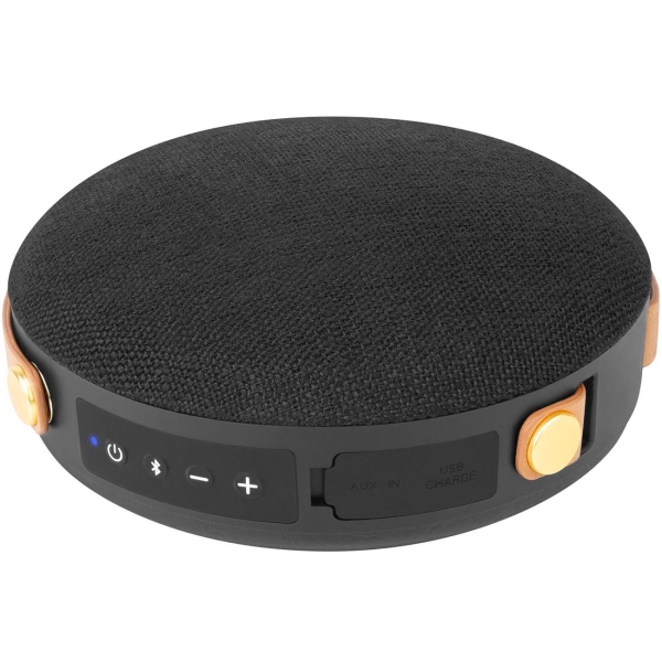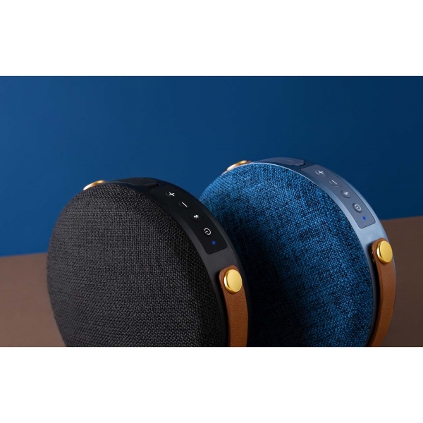 Благодаря кожаному ремешку для переноски и весу 400 г вы легко возьмёте аудиосистему на прогулку, в поездку или на отдых за городом. Она оснащена аккумулятором, ёмкость которого составляет 2200 мАч.